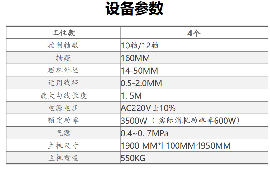 3.快速換型:旋轉盤根據磁環(huán)任意調節(jié),銅線規(guī)格任意更換,伺服電機數量多,機械位置手動調整少